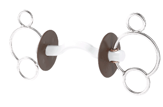 Providing the combined effect of a port and the positive characteristics of the butterfly bar, the profile of the beris KONNEX bar is slimmer and it positions itself very comfortably in the horse’s mouth. There is also more room available as the port in the beris KONNEX bar is significantly wider. Suitable for horses with little space in the mouth e.g. thoroughbred types or older horses (due to change in tooth alignment), horses with large tongues and, in particular, ones sensitive to pressure points on the tongue. The 3 ring bit combines an effective lateral restriction, lever and elevator action in one. The degree of effect is selected by the different buckling possibilities for the reins. Buckled onto the bottom ring, taking up the rein exerts the effect of a short lever. The 3-ring bit is often used to test the horse”s reaction to a lever effect.