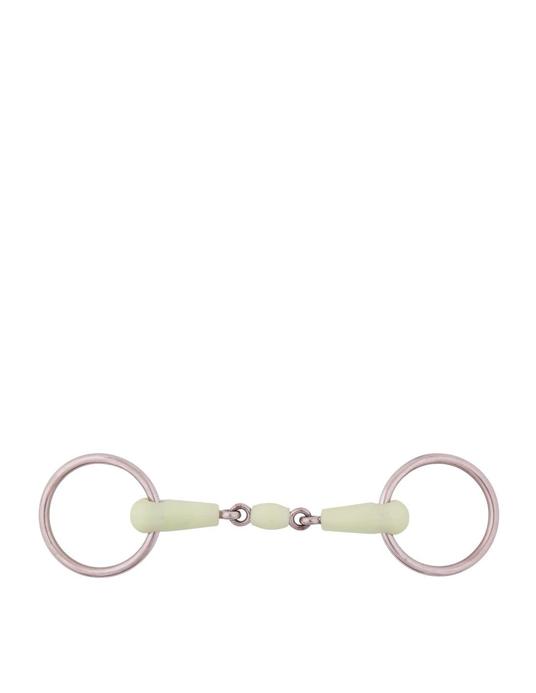 Double jointed loose ring snaffle bit with stainless steel rings, rings 55 mm for 11.5 cm and 65 mm for 12.5 cm, 13.5 cm and 14.5 cm. Mouthpiece thickness 18 mm.