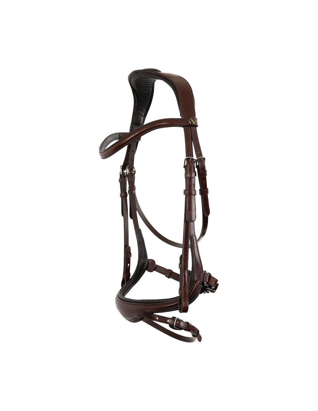 This anatomically shaped bridle stands out for its U-shaped noseband and the wide, soft headpiece.