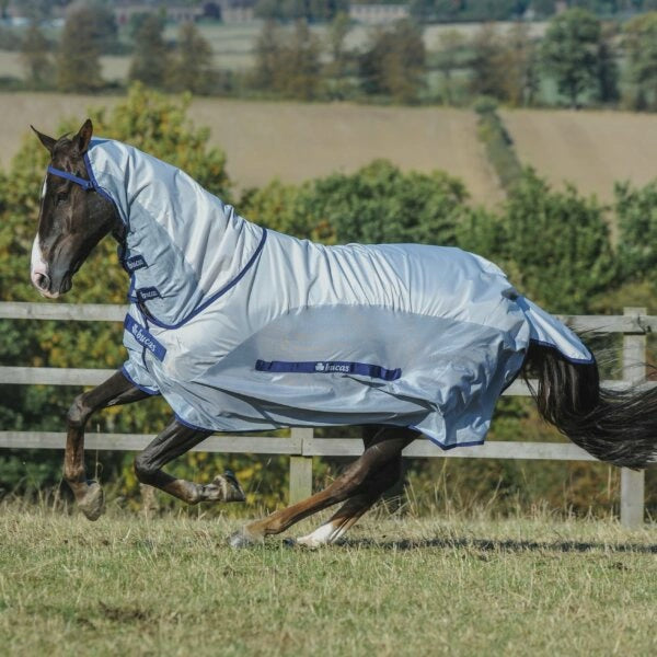 Together you have a lightweight, UV protective (reduce the effects of ultraviolet radiation by approx. 80% (UVA & UVB)) and waterproof rug. The elasticated and detachable belly pad gives protection to the belly of the horse and helps to stabilise the rug in position.