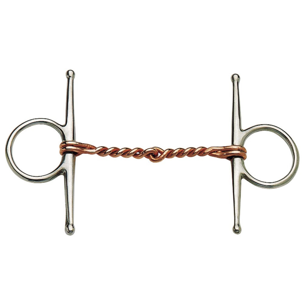 • This Snaffle has full cheeks and a twisted copper wire mouth.
