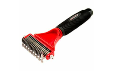 The SoloRake is a unique, double headed grooming rake. As you comb a pet’s coat, horse’s mane or tail, the rake easily removes hair. They are ideal for shaping, finishing, thinning and creating a hand stripped look. Perfect for removing winter coats fast and painlessly. Rounded tooth combs lift coat evenly for clipping, removing tangles and dead undercoat.