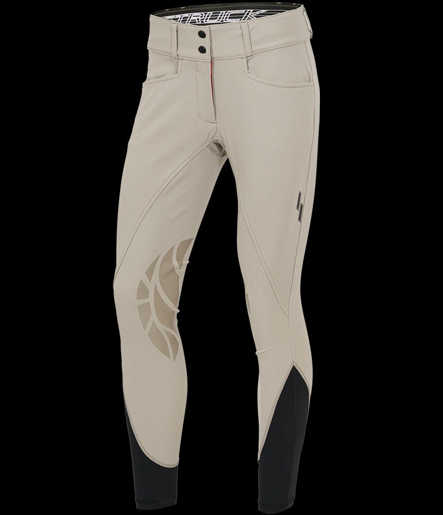 The Struck 60 Series Ladies’ breech offers maximum comfort for those who need a little more room in the bum and thigh areas. The unique crotch gusset offers the ultimate comfort in the saddle while allowing you to stretch across the pommel without any tightness or restrictions. The mid rise cut sits just below the bellybutton, but leaves you feeling comfortable and supported. The flattering seam across the front and side of the legs gives the illusion of elongating your silhouette, but still allows for maximum stretch and movement. The Schoeller Prestige fabric offers incredible stretch, shape retention, and breathability. It’s made to resist fading and stains. The custom waistband is designed to keep your shirt tucked in, and to eliminate gapping. The sock bottom is soft on the leg and it creates a smooth comfortable fit under your boots with no bulk. These breeches are finished with the signature red sport-lock zipper, and grip knee patch system. Designed and manufactured in Canada.