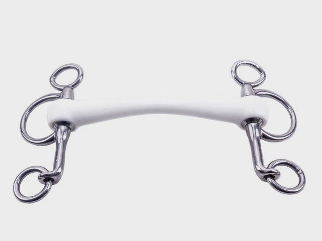 These bits act on three different points on the horse's head: via the tongue on the lower jaw, through the leverage of the cheek pieces on the neck and via the curb chain on the lower jaw. The rein aid is distributed over the various pressure points on the horse's head. This enables the rider to have better influence and control, e.g. with strong or stormy horses.
