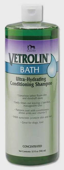 A favorite with the horse show crowd, Vetrolin Bath is a hydrating shampoo for horses with PABA sunscreen and coat conditioners. The great lather and easy rinse make this shampoo a best seller at Mary's. Just a squirt of this concentrated shampoo gets your horse clean and shiny. This gallon size is great for multiple horse barns or horse shows.